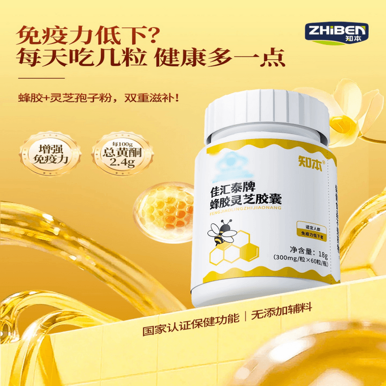 Propolis Reishi Capsules Immune Boosting Health Supplement 60-Capsule Pack