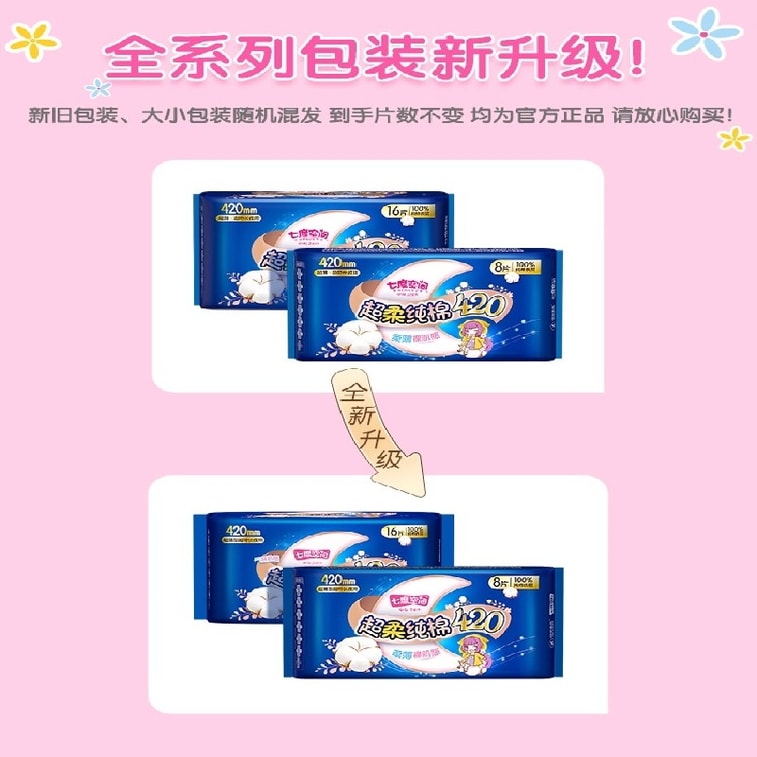 Pure cotton 420s super long night sanitary napkins and sanitary napkins 420mm 16 pieces per pack