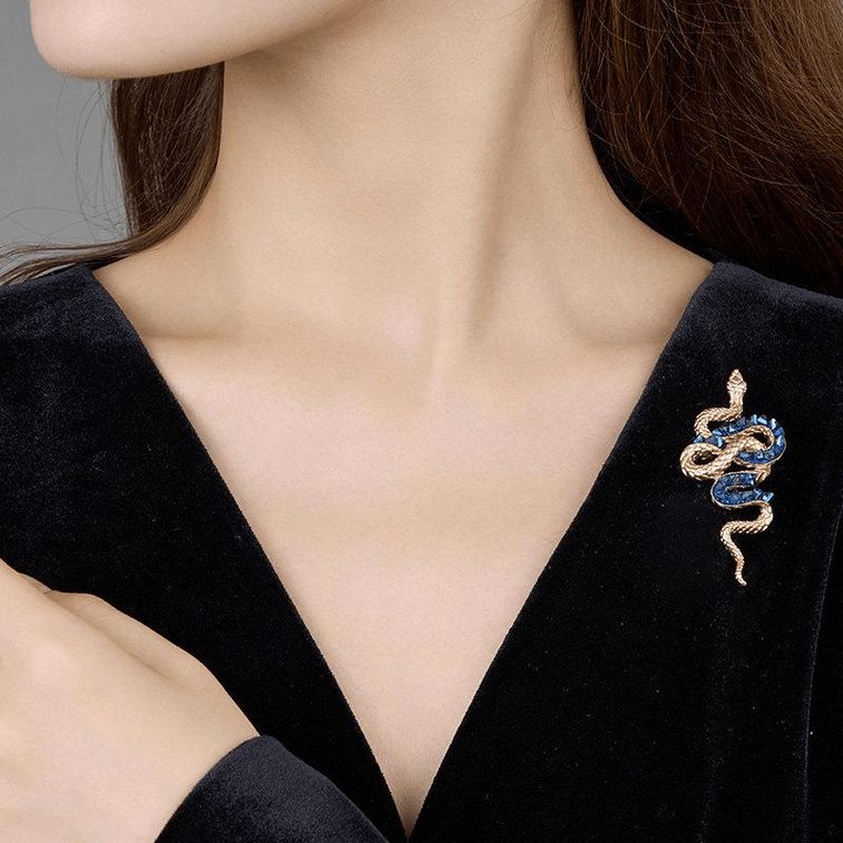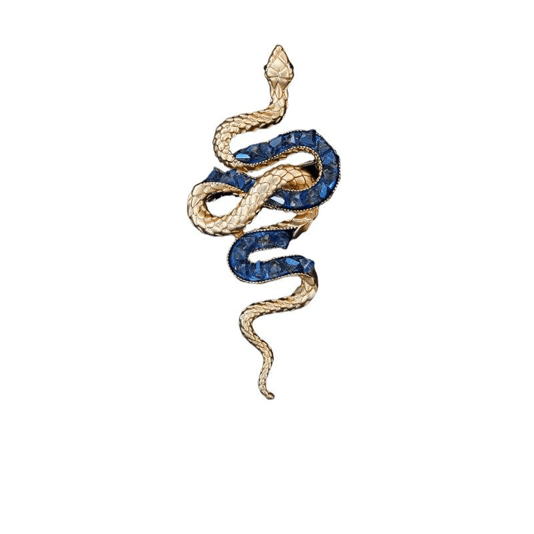 Python Light Luxury Brooch High-end Exquisite Versatile Snake Chest Flower Pin Gold Blue 6.4 * 2.8 Cm