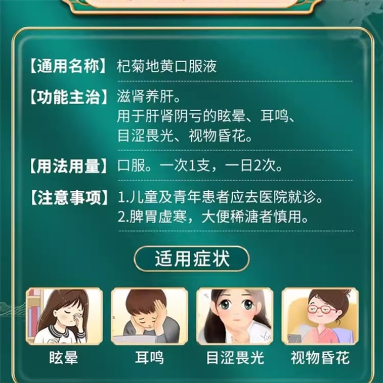 Qiju Rehmannia Oral Liquid for Relieving eye fatigue and nourishing liver Fire: 10ml*12 bottles per box