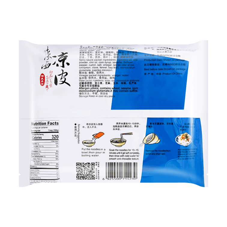 Shaanxi Cold Skin Noodles - Liangpi , Hot and Spicy Flavor , 5.92 oz