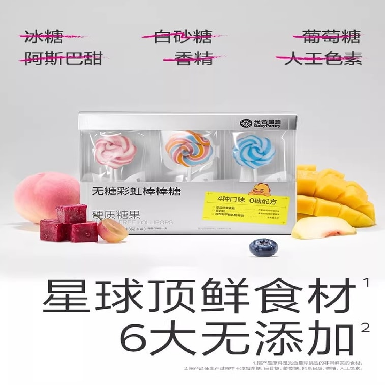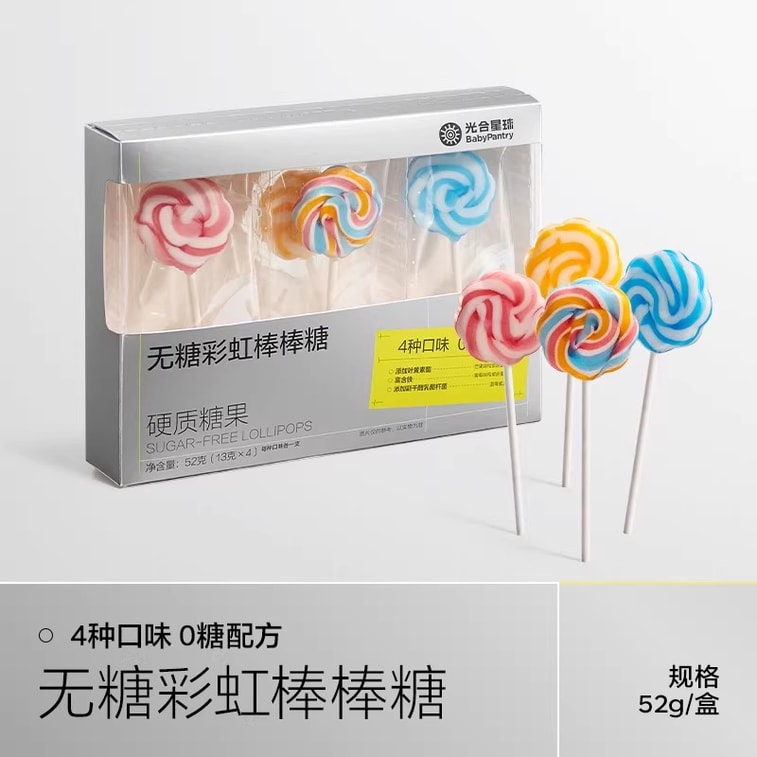 Rainbow lollipop candy, sugar-free juice candy, children's snack, no added sugar, 52g per pack | Yami