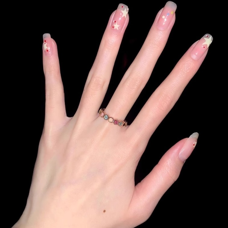Rainbow Tourmaline Ring Open Adjustable Finger Ring Ins Style Colorful Diamonds Finger Jewelry With Box