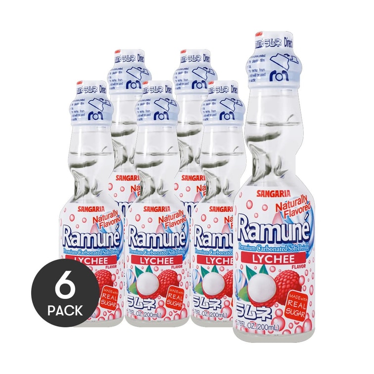Ramune Premium Carbonated Soft Drink Lychee Flavor, 6.76fl oz *6【6 Packs】