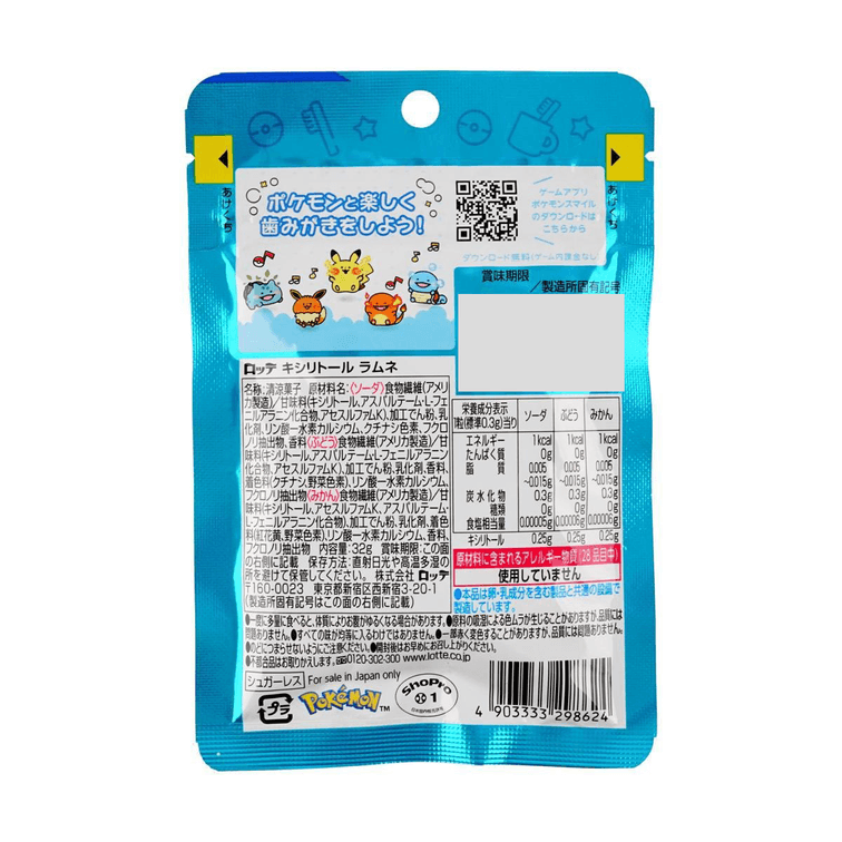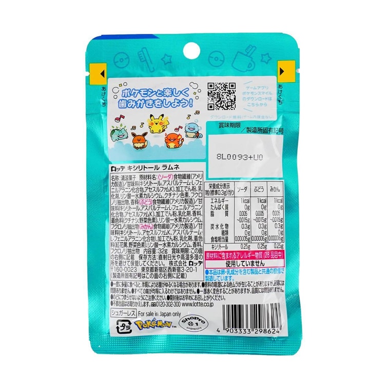 Pokemon Xylitol Tooth-Protecting, Soda Gummy Grape Orange Flavor 1.13 oz