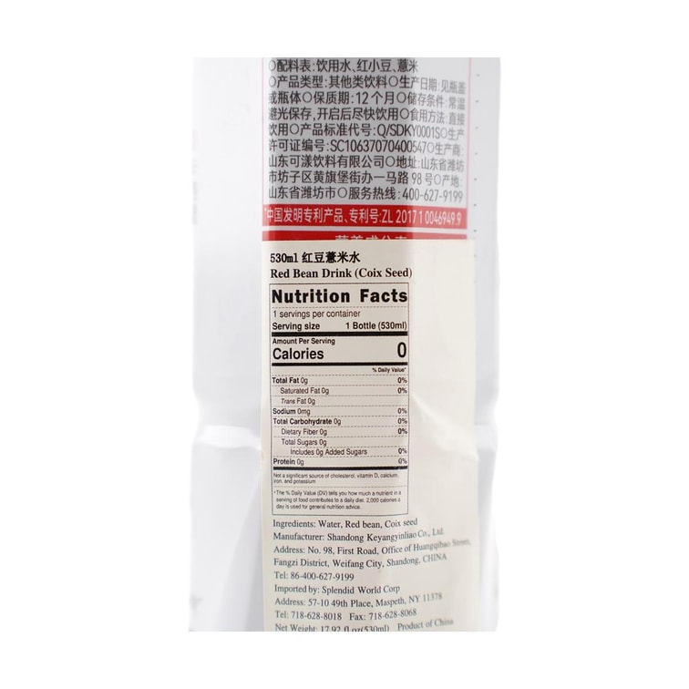 Red Bean Drink-Coix Seed ,0 Sugar 0 Calories 0 Fat,17.92 fl oz *6【6 Packs】