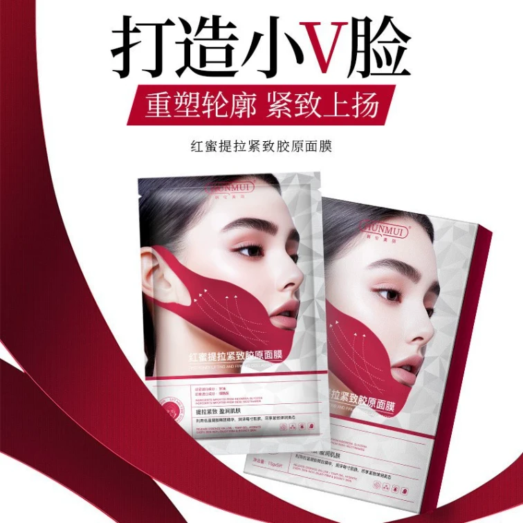 Red Honey Lifting & Firming Collagen Mask Face Hanging Ear Patch Double Chin V Face Slimming Mask 5pcs/box