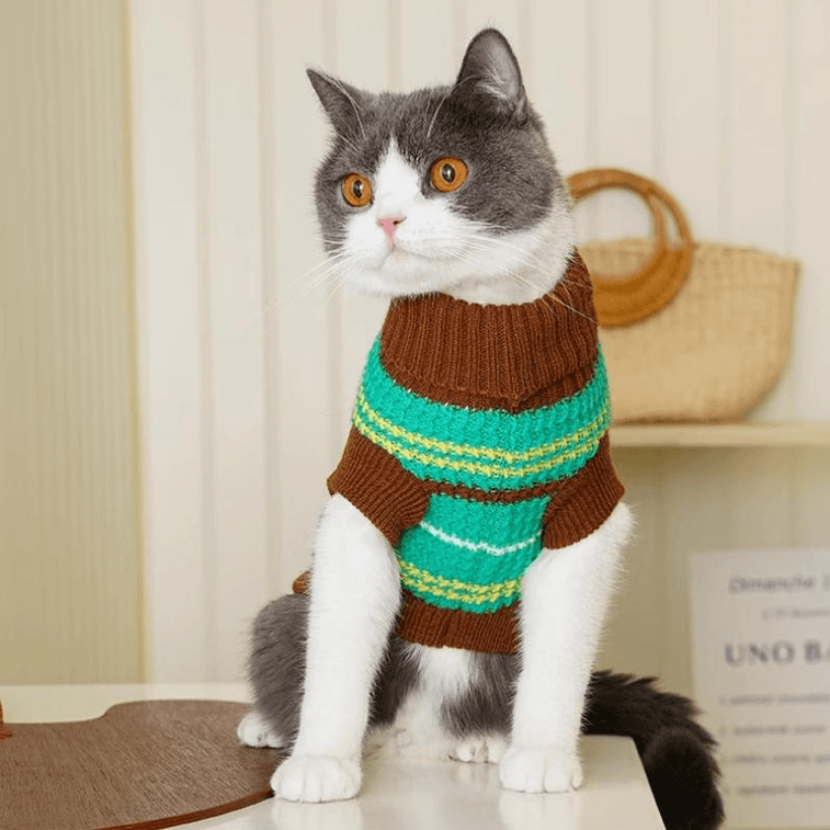Retro Striped Pet Knitted Sweater (Green)S Suitable For 6-8 Pounds *1 Piece