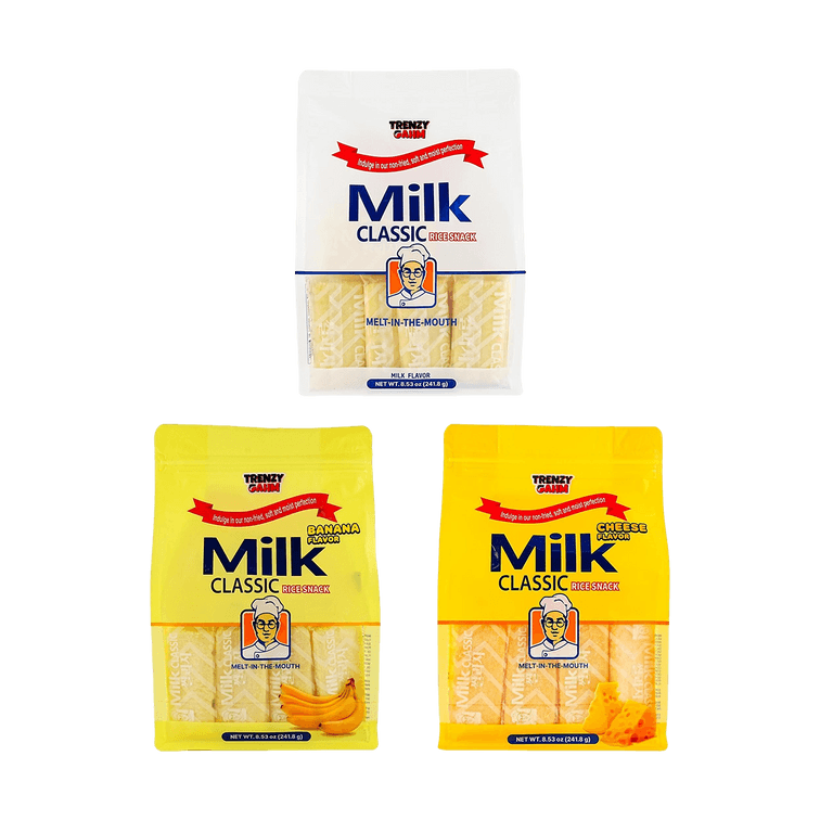 Rice Crackers,Classic Milk Flavor+Cheese Flavor+Banana Flavor ,8.53 oz*3【3 Combo Packs】【Korea Trendy】