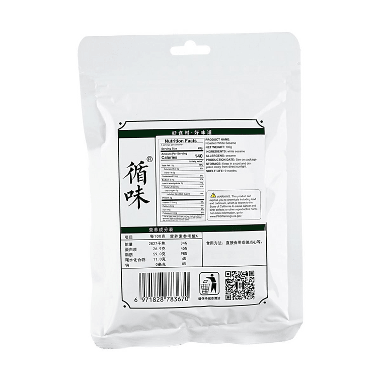 Roasted White Sesame ,3.53 oz 【For Barbecue ,Baking and Stir-Frying】