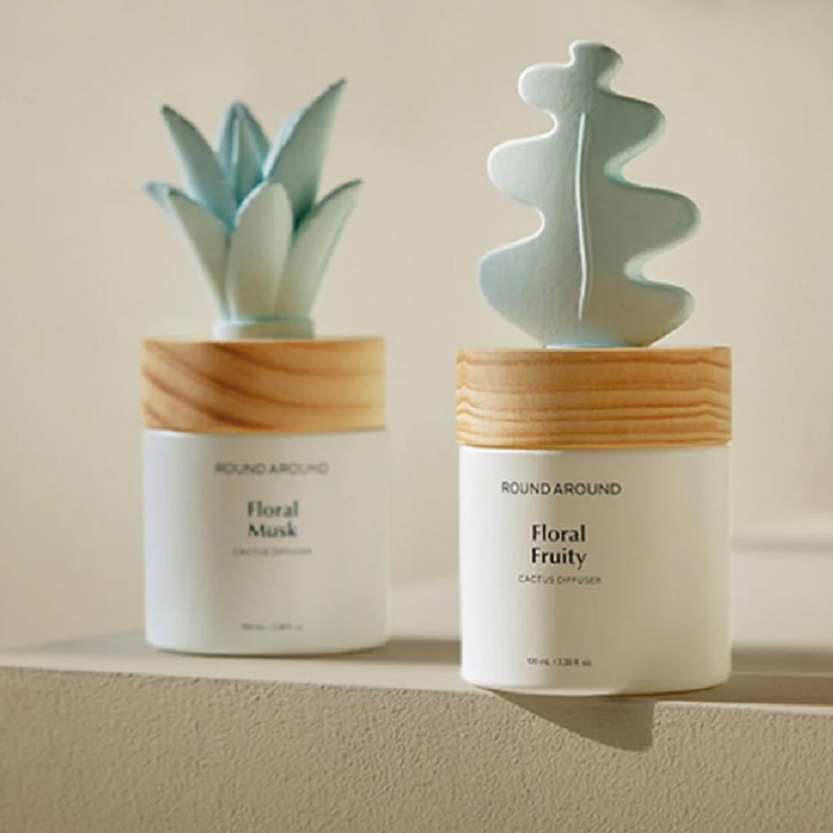 ROUND A’ROUND Fishbone Cactus Diffuser for Room - Floral Fruity Scent 3.38 fl oz | Yami