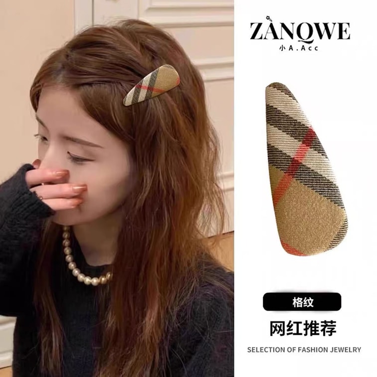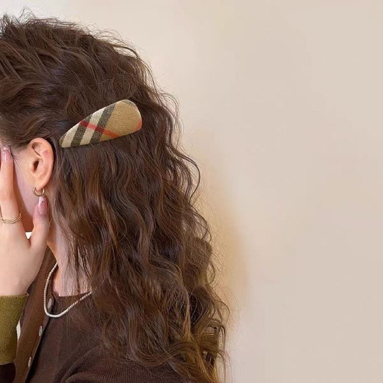 Simple plaid fabric BB clip hair clip sweet retro side clip bangs clip versatile hair accessory 1 pair