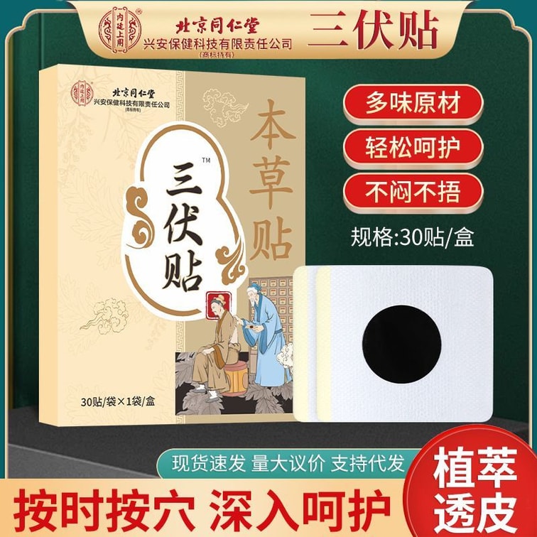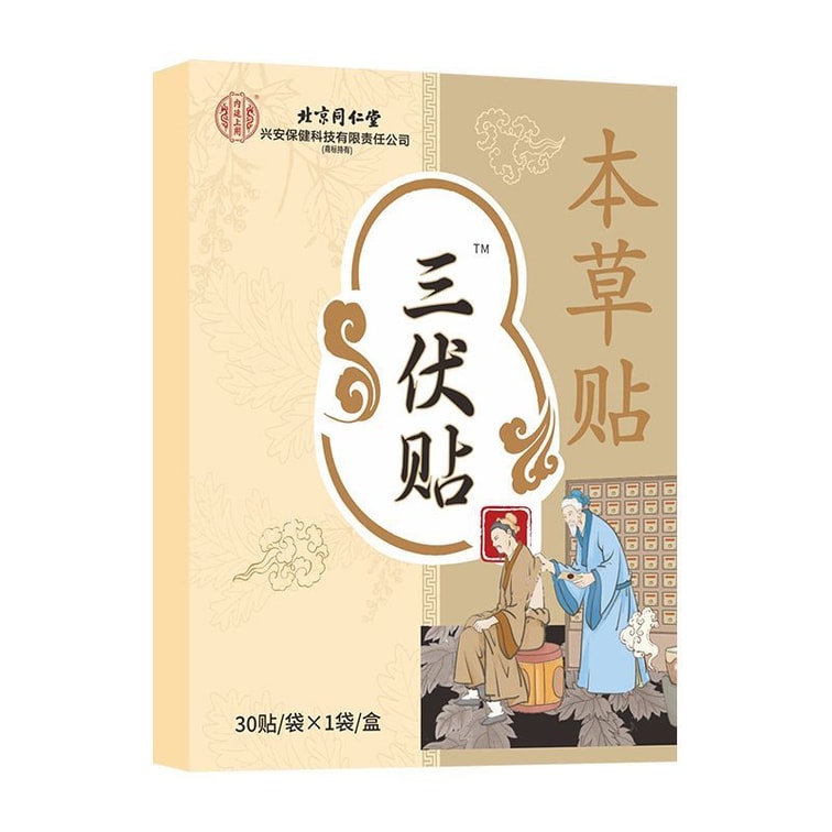 Tongrentang Moxibustion Patches - 30 Pcs for Warming Meridians Dispelling Cold & Dampness Sanfu Tie Therapy