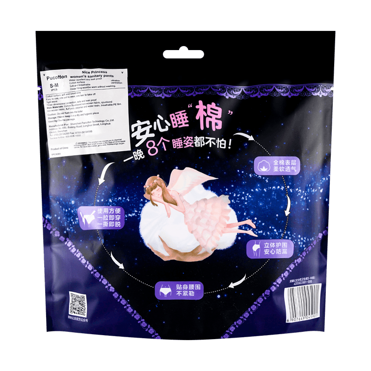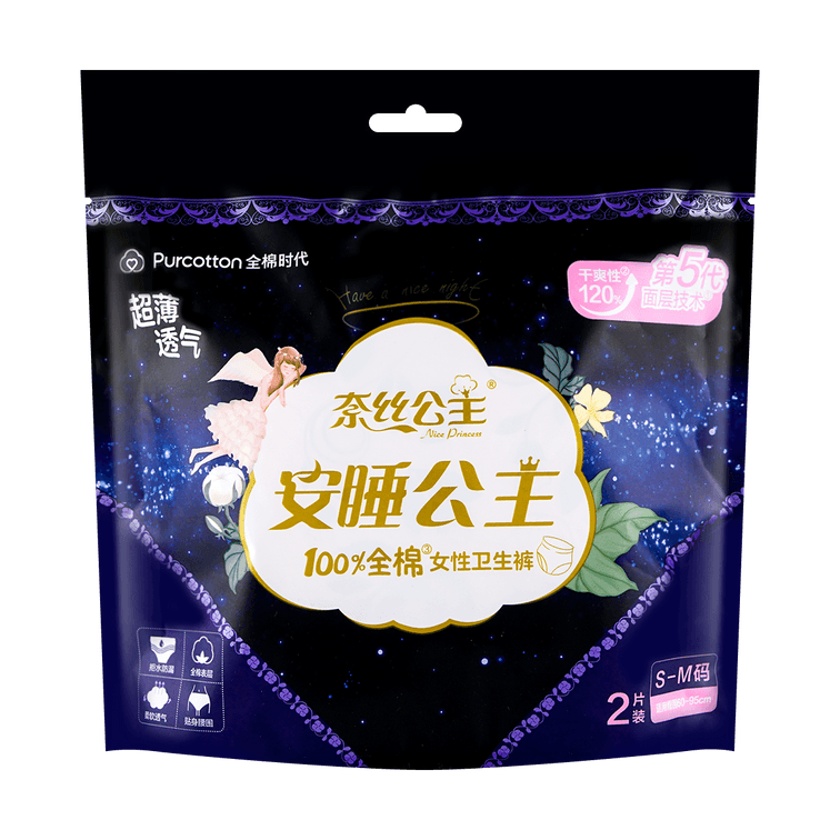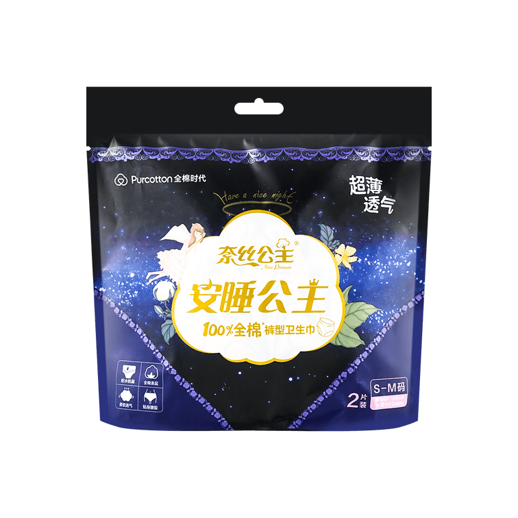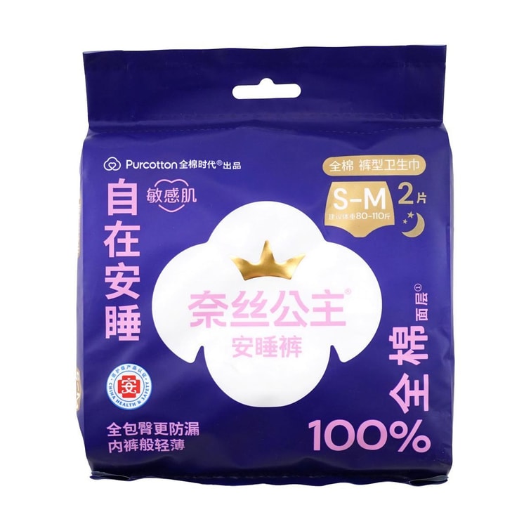 NICE PRINCESS Shorts Type Sanitary Napkin Pants For Night Size S-M 2pcs, Packing May Vary