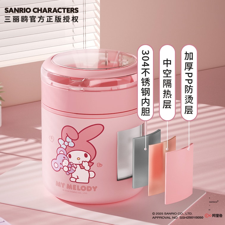Sanrio 304 Stainless Steel Insulated Cup Portable Breakfast Mug Melody 520ml 1-Piece Set
