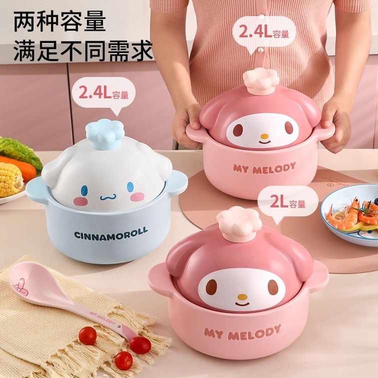 Sanrio ceramic casserole pot resistant to high temperature gas coal stew soup 2L big ear dog 1 pack