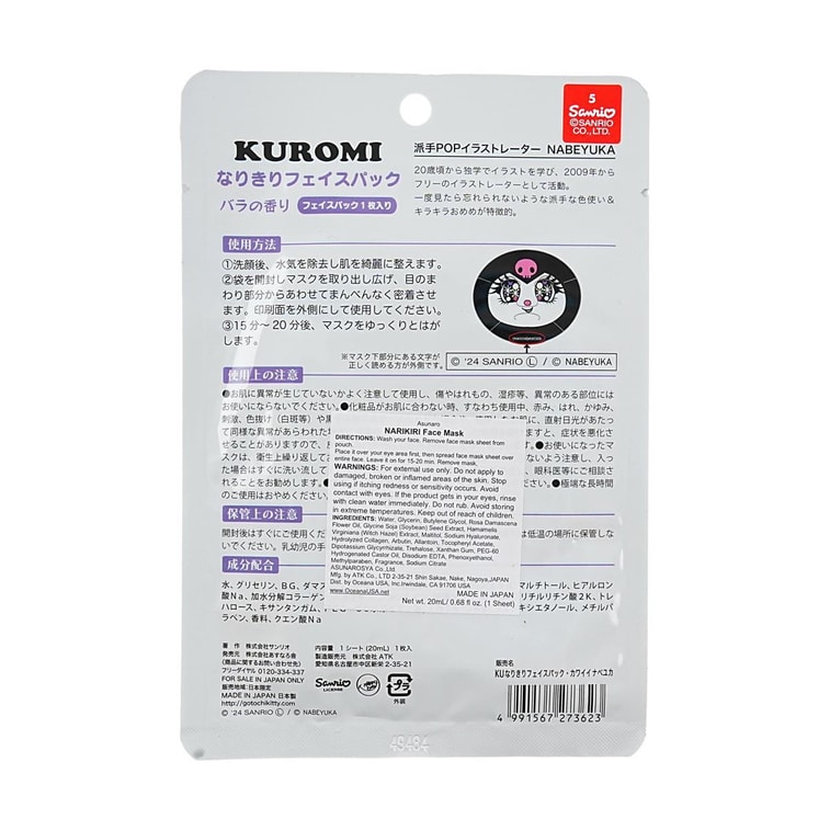 Sanrio Kuromi Face Mask 1 PC