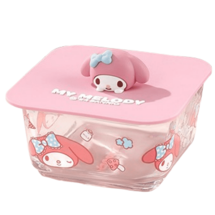 Sanrio Snack Plate Home Hot Pot Dipping Sauce Dish Glass Fruit Bowl with Silicone Lid Melody 1-Piece Set