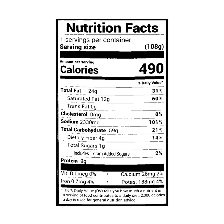 *Disclaimer:Nutrition info is based on product packaging and for reference only. Content may vary due to version, language, or image differences. Please check the actual package. For questions on ingredients, allergens, or suitability, read the label or contact support.
