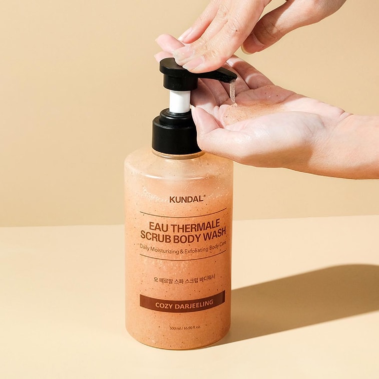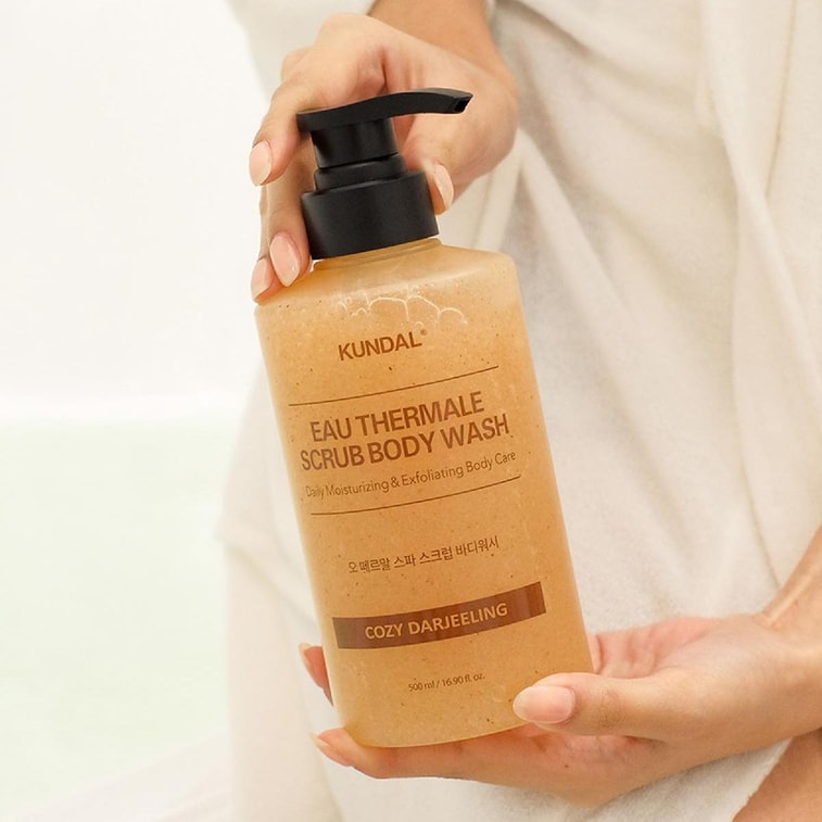 KUNDAL Eau Thermale Scrub Body Wash, Cozy Darjeeling, 16.91fl oz | Yami