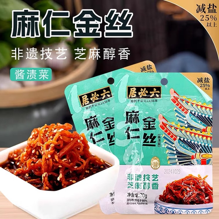 Sesame Seed Golden Silk Pickles Old Beijing Pickles Breakfast Side Dish Rice Accompaniment Salty Vegetables 70g * 2 Bags