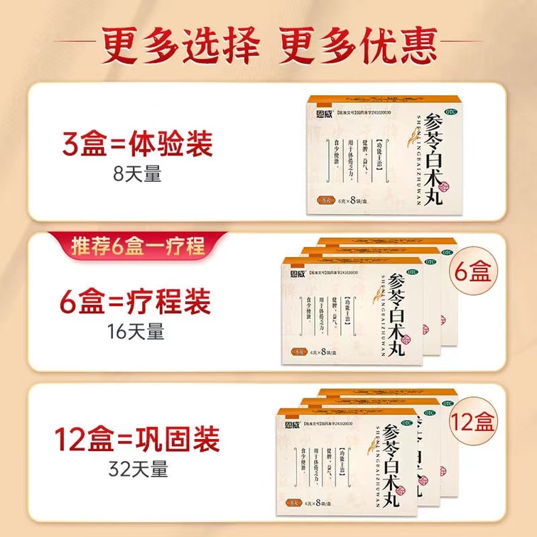 Shen Ling Bai Shu San Wan Spleen Strengthening And Dampness Dispelling Regulating Spleen And Stomach 6g * 8 Bags