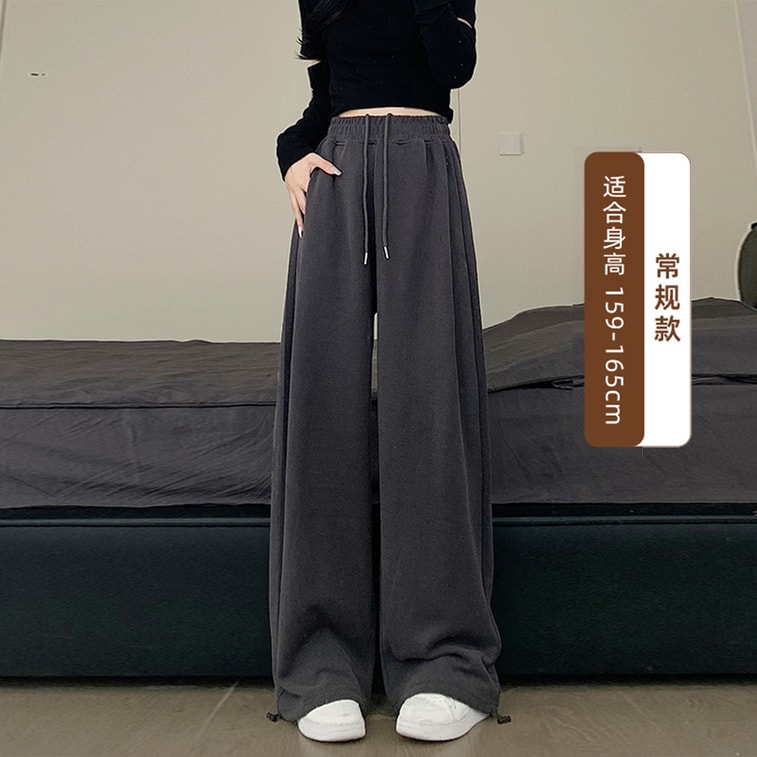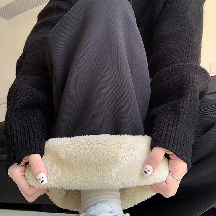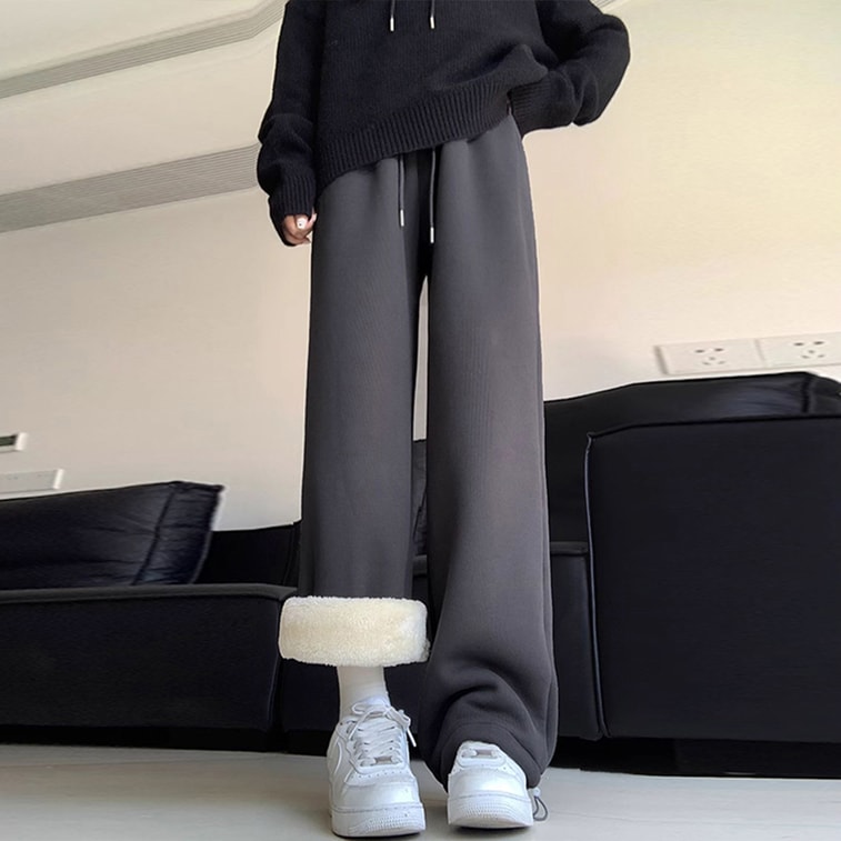 Sherpa Lined Sweatpants Winter Warm Thickened Fleece Pants Loose Fit Straight Leg Cuffed Hem Casual Styles Dark Grey Sherpa Regular Length L 1 Piece