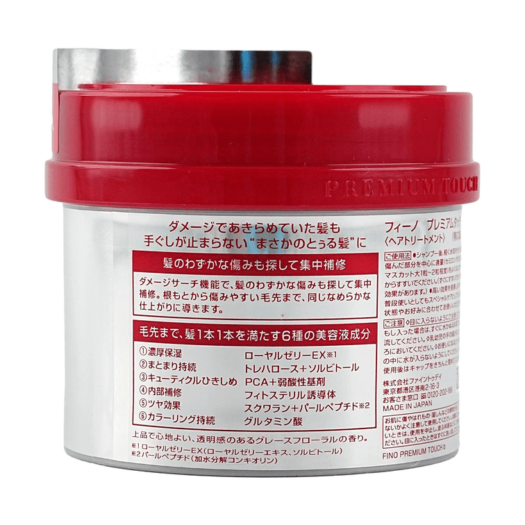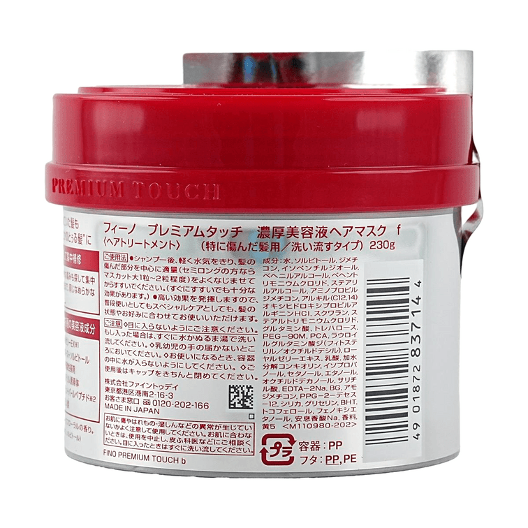 This hair mask is designed for effective and fast hair repair. No matter if your hair is naturally dry, damaged by coloring, perming, sun exposure, and/or other environmental factors, Shiseido's hair mask is here to help. FINO Premium Touch Hair Mask is formulated with royal jelly EX, Para- chloroamphetamine, and Lipidure EX that moisturize, strengthen, and repair. With these three major improvements, your hair will look nourished and shiny again.