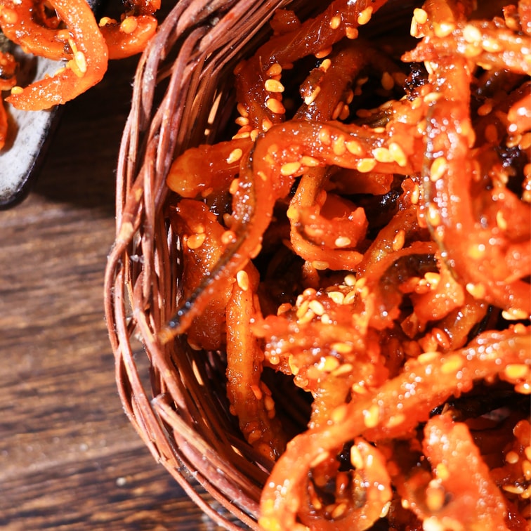 Eel shreds spicy seafood Instant dried fish Casual snack fish Dishes that go well with rice spicy100g