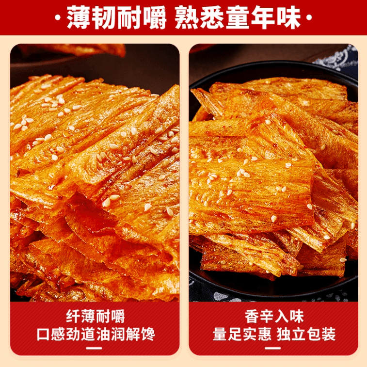 BiBiZan Hand-torn tofu skin spicy strips tofu dried spicy slices small package spicy snacks * 1 bag 8 sachets | Yami