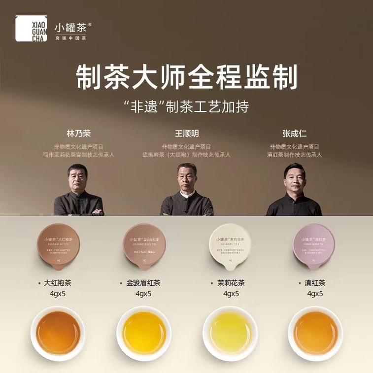Silver Can Series. 4 Flavors. 20 Cans Per Box. Dahongpao Tea Jinjunmei Black Tea Jasmine Tea Yunnan Black Tea. Taste