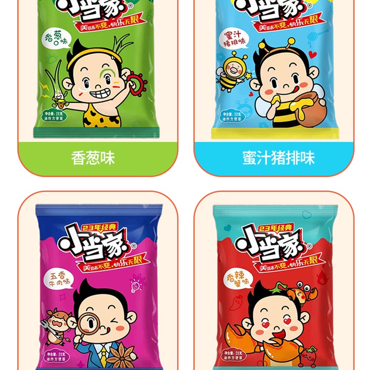 | Flavor | Chives, spiced beef Spicy crab, honey pork chop flavor |