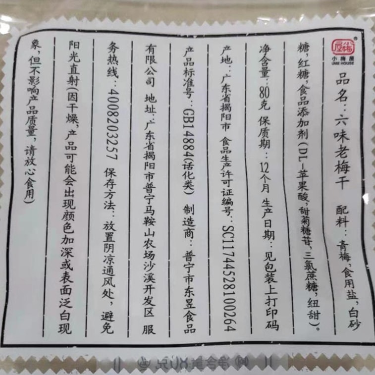 Six Flavors Preserved Plums (Sour Plums) 80g * 3 bags