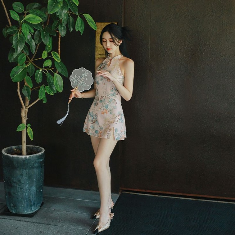 Skinny Chinese Style Pure Desire Swimsuit Lotus Pink XL