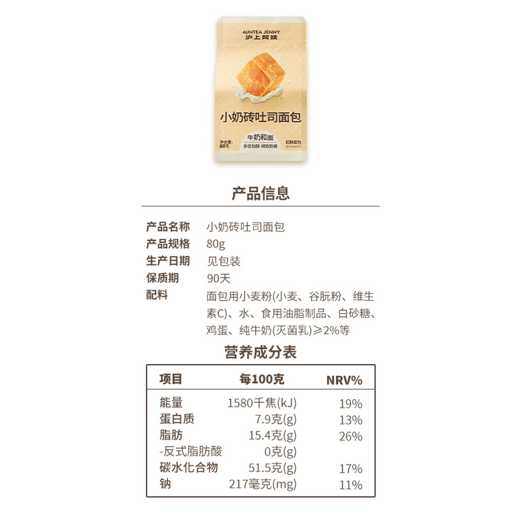 Small milk brick toast bread breakfast snack independent portable pack 80g*1 bag