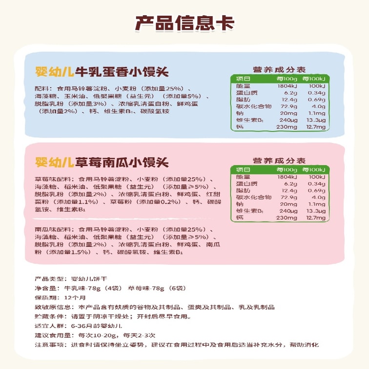 Small steamed buns infant milk and egg-flavored steamed buns cookies baby snacks 78g per box