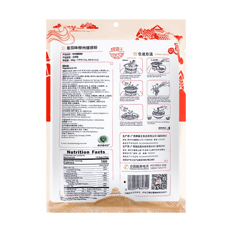 【Value Pack】Luo Si Fen Snail Rice Noodles - Tomato Flavor, 10 Packs* 10.79oz