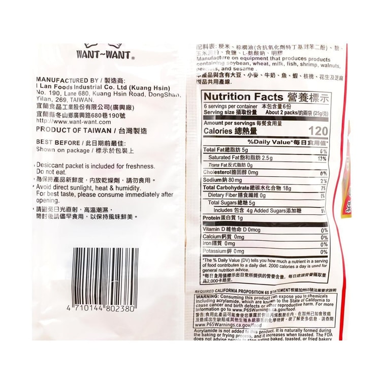 Snow Cake & Xianbei Crispy Rice Cake Snacks 84g+52g