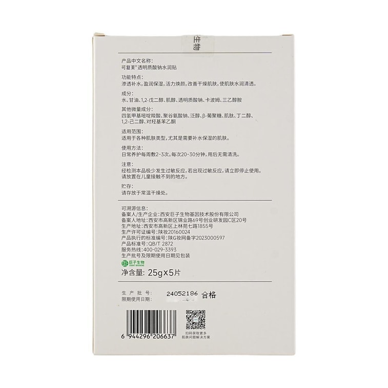 Sodium Hyaluronate Moisturizing Mask 5 Sheets