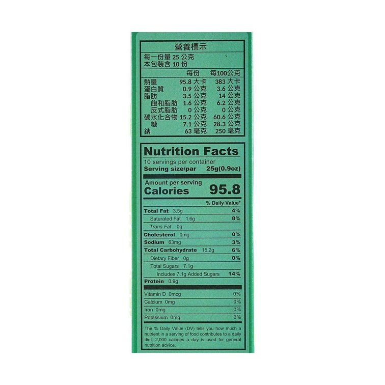 *Disclaimer:Nutrition info is based on product packaging and for reference only. Content may vary due to version, language, or image differences. Please check the actual package. For questions on ingredients, allergens, or suitability, read the label or contact support.