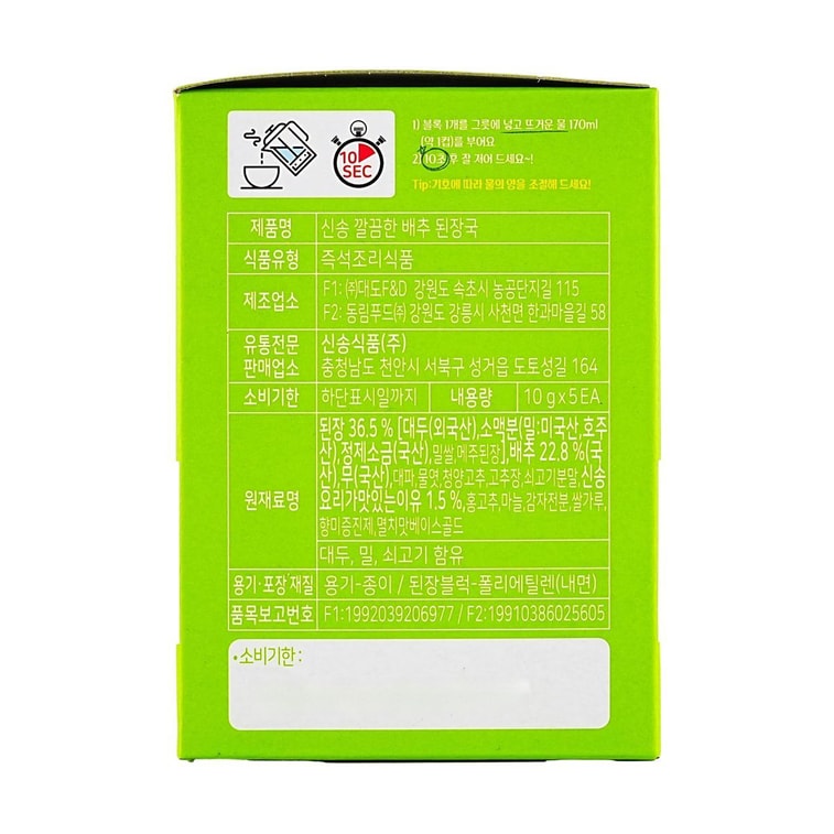 Soybean Paste Soup With Cabbage, 5 Packs, 1.76oz 【Instant Soup】