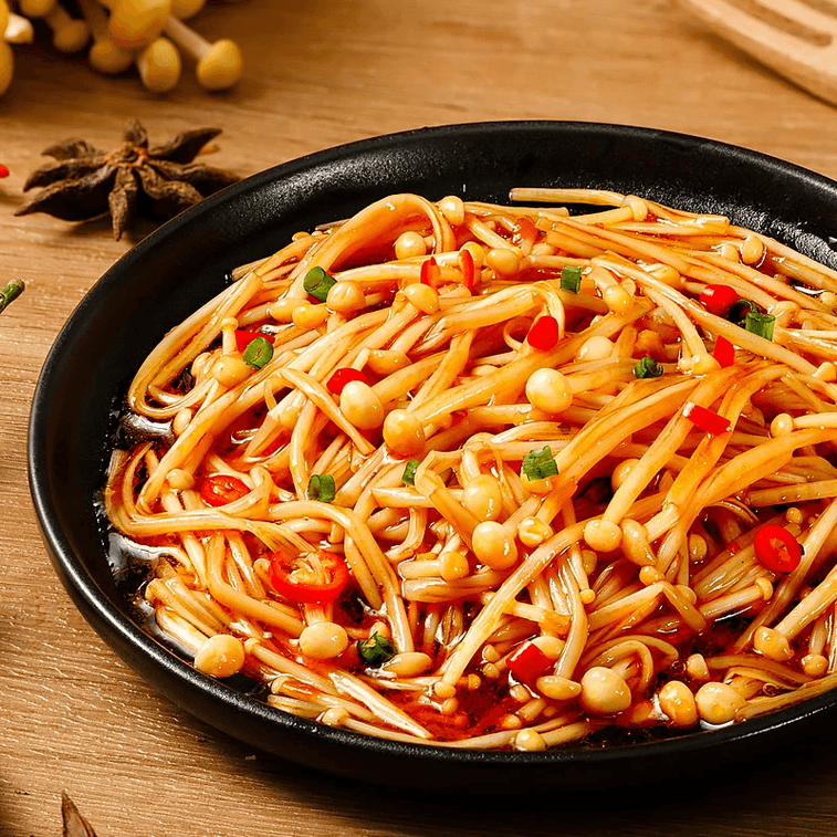Spicy Red Oil Enoki Mushrooms, Large Pack 60g*3