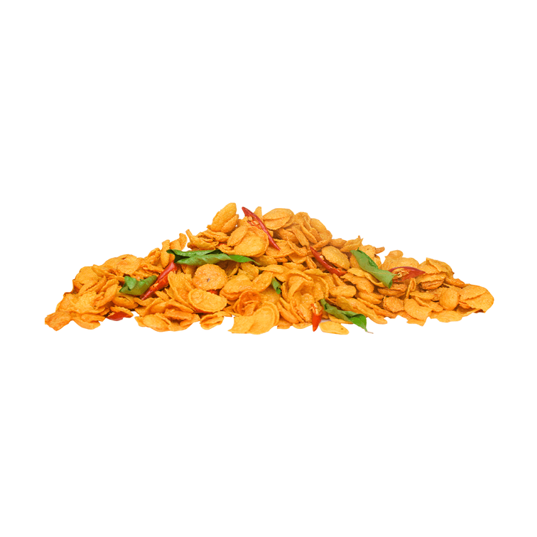 Ingredients:Cornflakes (51.5%),Salted egg yolk (22.9%), Butter,Sugar, Curry Leaf, Bird’s Eye Chilli