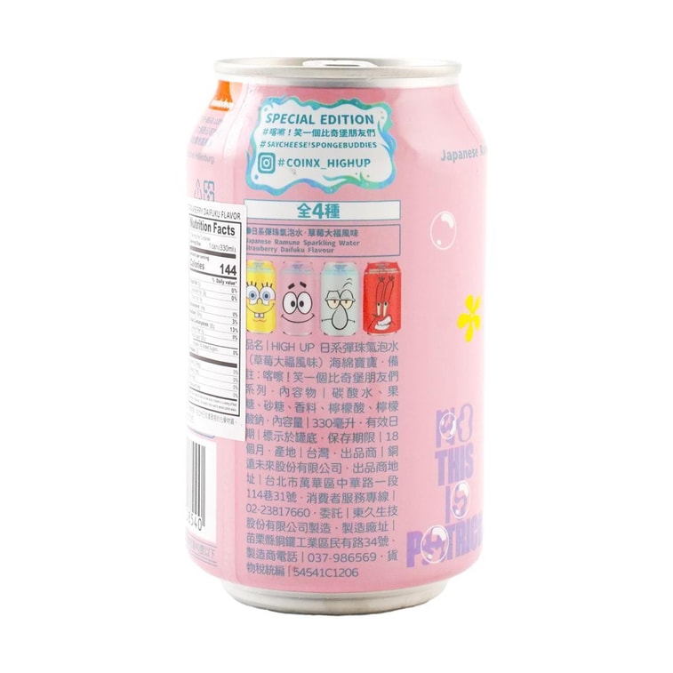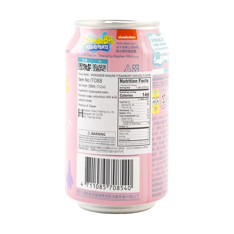 Spongebob Ramune,Sparkling Water,Strawberry Daifuku Flavor,11.16 fl oz