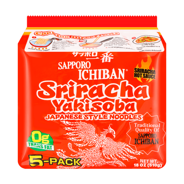 Sriracha Yakisoba - Spicy Japanese-Style Instant Noodles, 5 Packs, 18oz
