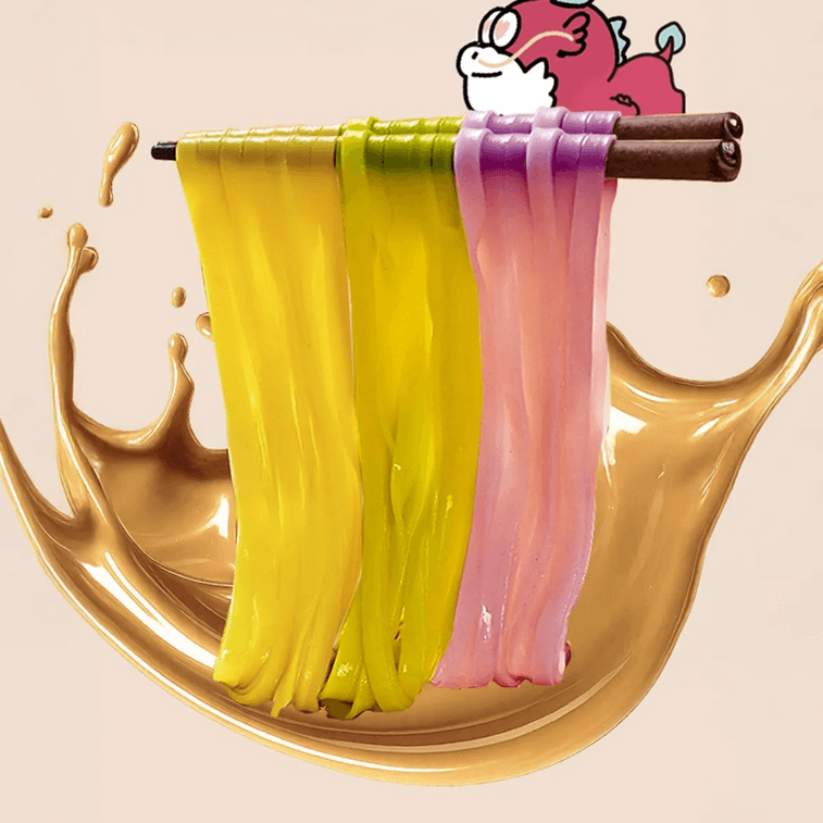 Three-color tendon noodles, hot-air dried, absorbent and chewy with a grain aroma, paired with smooth and bouncy fish balls for a rich texture