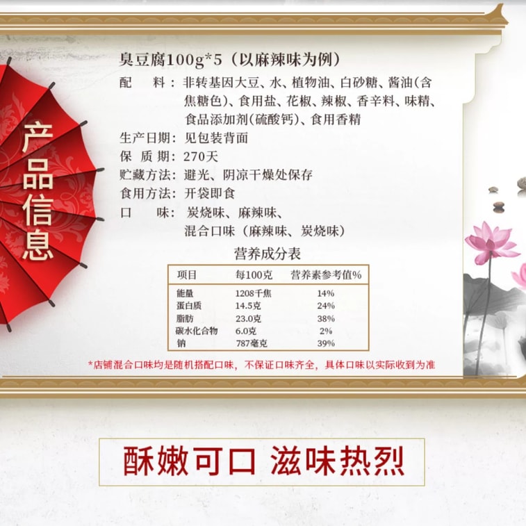ZUMING Stinky tofu dried tofu [popular online] authentic deep fried [5 small packets inside] appetizing snacks 100g * 1 packet | Yami