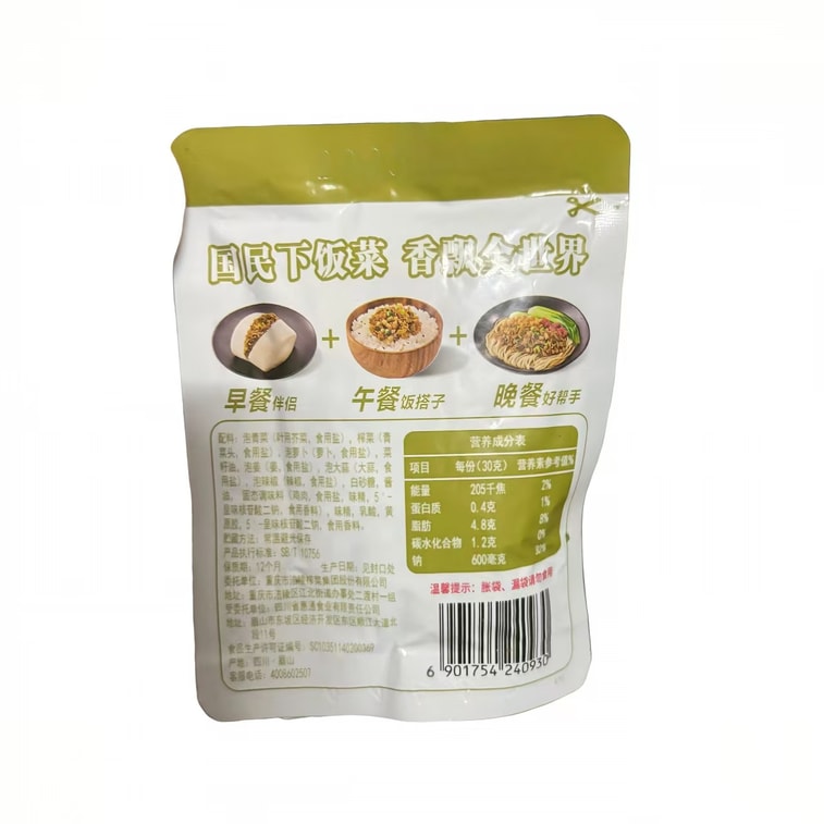 Stir-Fried Grandma's Vegetables - Side Dish for Rice, Fried Rice Ingredient, Instant Pickled Vegetables, Portable 30g*6 Packs
