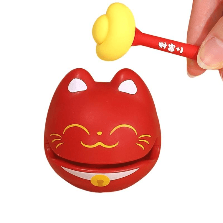 Stress-relieving Toy Wooden Fish Table Decoration, Red Lucky Cat, 57*68*60mm