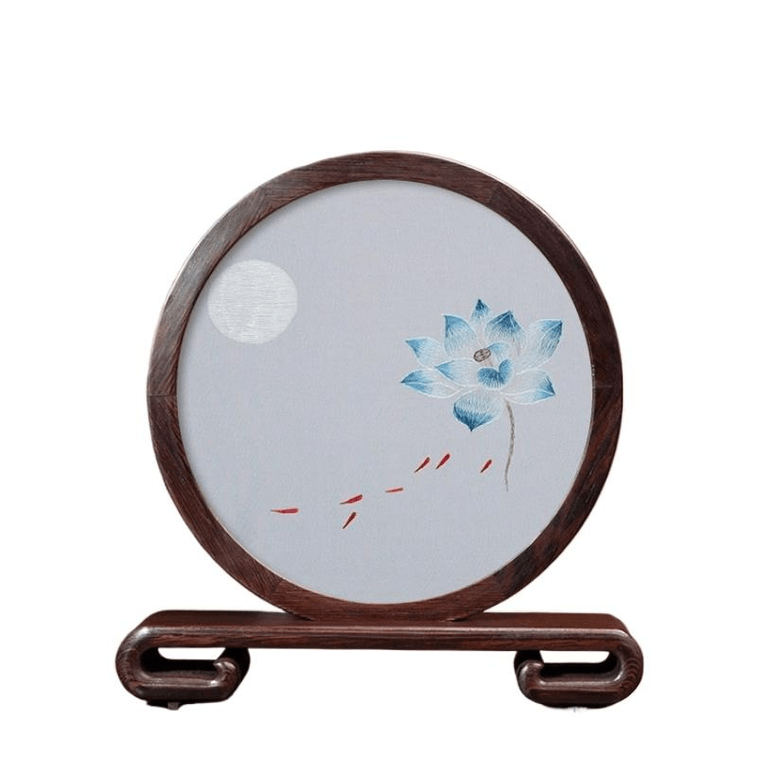 Su Embroidery Handmade Silk And Silkworm Thread Embroidery Handicraft Ornament Lotus Pond Moonlight 21.5 * 24 * 4.5cm